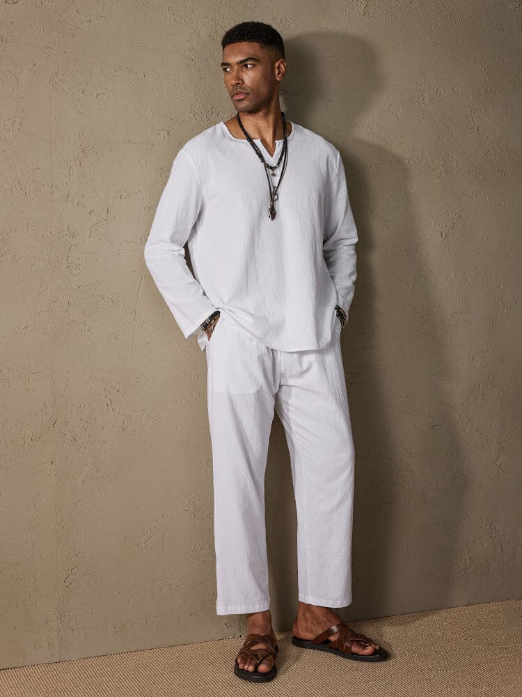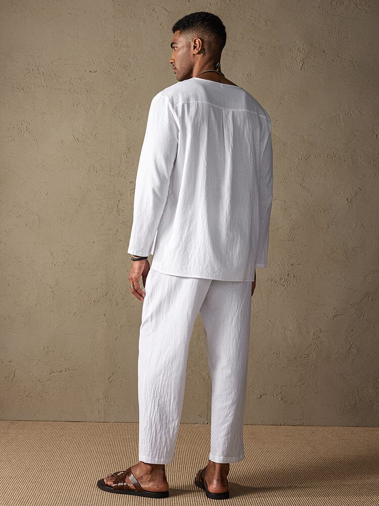 Cozy Solid Cotton and Linen Shirt Set